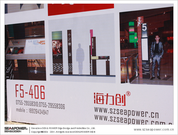 海力创标识设计(深圳)有限公司,专业城市综合体、SHOPPING MALL、主题商场、酒店、地产、商业街导示系统、标识系统设计机构。深圳市海力创标识设计制作有限公司——大型SHOPPING MALL标识系统设计领导者!深圳海力创标识SEA&POWER于2004年成立,总部位于深圳特区,拥有国际化的设计团队及合作伙伴。SEA&POWER服务范围涵盖产品品牌策略制定,环境景观标识规划设计,标识产品规划设计及制作管控。是中国知名的设计机构。深圳海力创标识SEA&POWER多年来不断致力于提高产品规划设计的竞争力,在竞争激烈的全球市场中。SEA&POWER能始终运用丰富的设计经验,独特的分析及设计方法。为客户创造了巨大的效益,赢得客户的信任。近年来中国经济突飞猛进,SEA&POWER经过六年对中国市场的成功运作,我们业绩斐然。业务覆盖北京、上海、广州、珠三角、昆明、成都、重庆、武汉、厦门、西安、青岛、大连等全国各地。